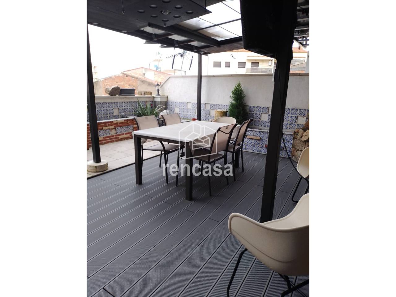 Piso de 3 dormitorios ( 1 suite doble, 2 individuales), 2 baños completos, 1 aseo en la terraza, salón con split de a/c, cocina semi-independiente, gran terraza con barbacoa, calefacción individual a gas.